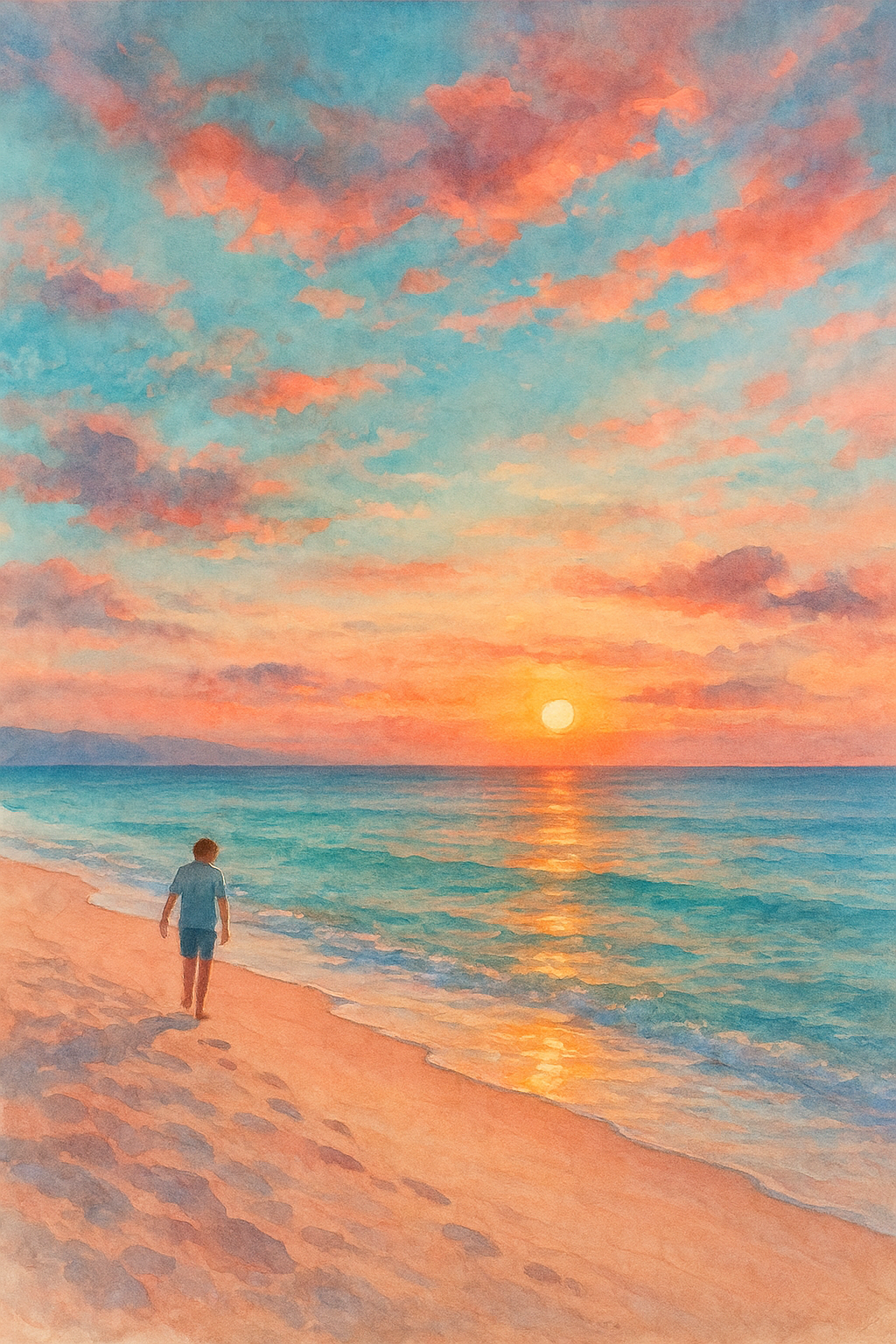 "The watercolor of the waters on the white sand of Aiguablava beach."
