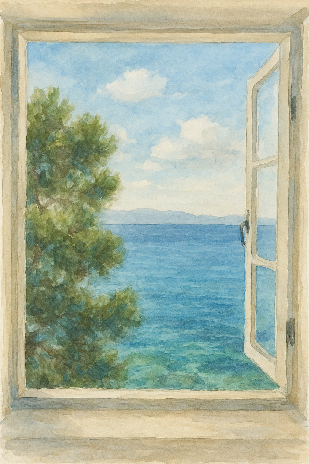 "The freshness of the olive trees gently swaying in the sea breeze."