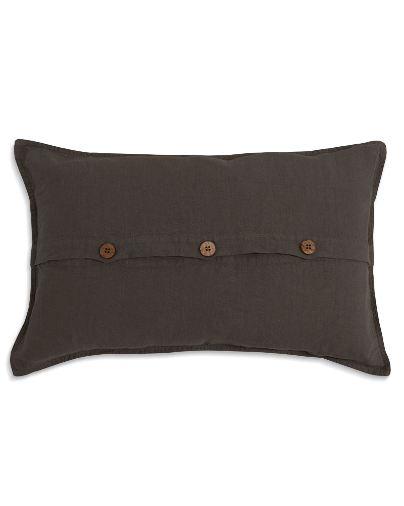 Coconut buttons. A very sustainable detail that adds a very stylish touch to the decorative cushions.