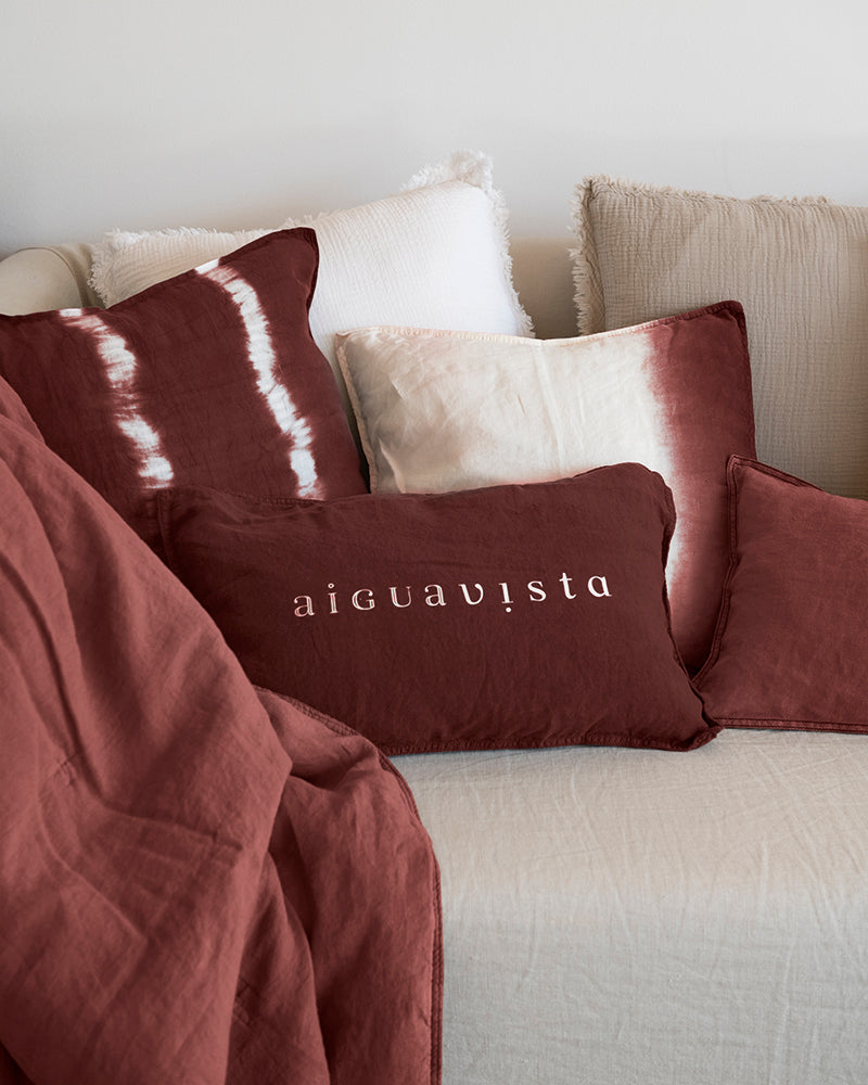 The Noa linen cushion collection is inspired by the sea in Begur. A touch to fill your living room or bedroom with light, life and well-being. Or to give your terrace a boho chic style with Dip dye. Noa is versatile, she is color, she is elegant; It is feeling between the sky and the sea. Hand-dyed.