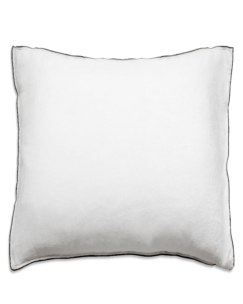 - Its handcrafted black scalloping frames each piece with a sophisticated and contemporary touch, elevating the naturalness of linen to a new elegance.