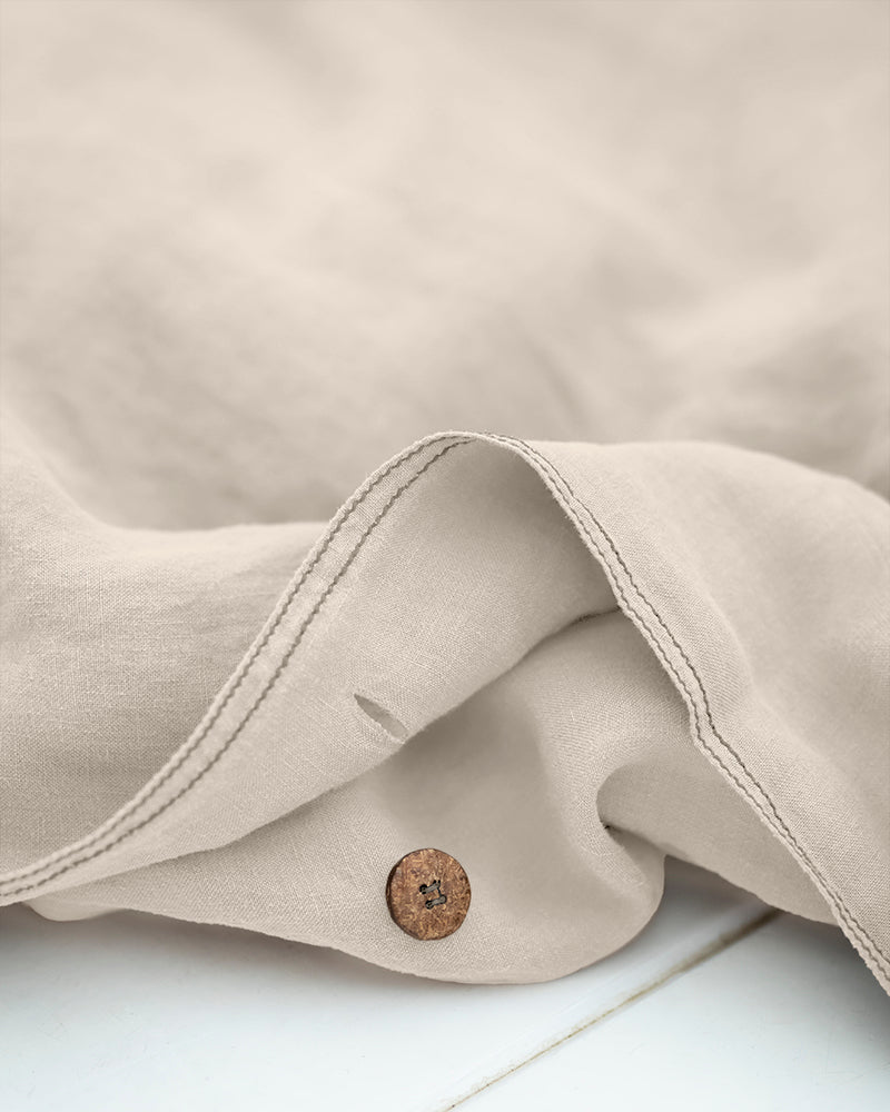 Coconut buttons. A very beautiful, very natural, very stylish and very sustainable detail for the duvet cover and the cushion covers.