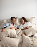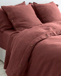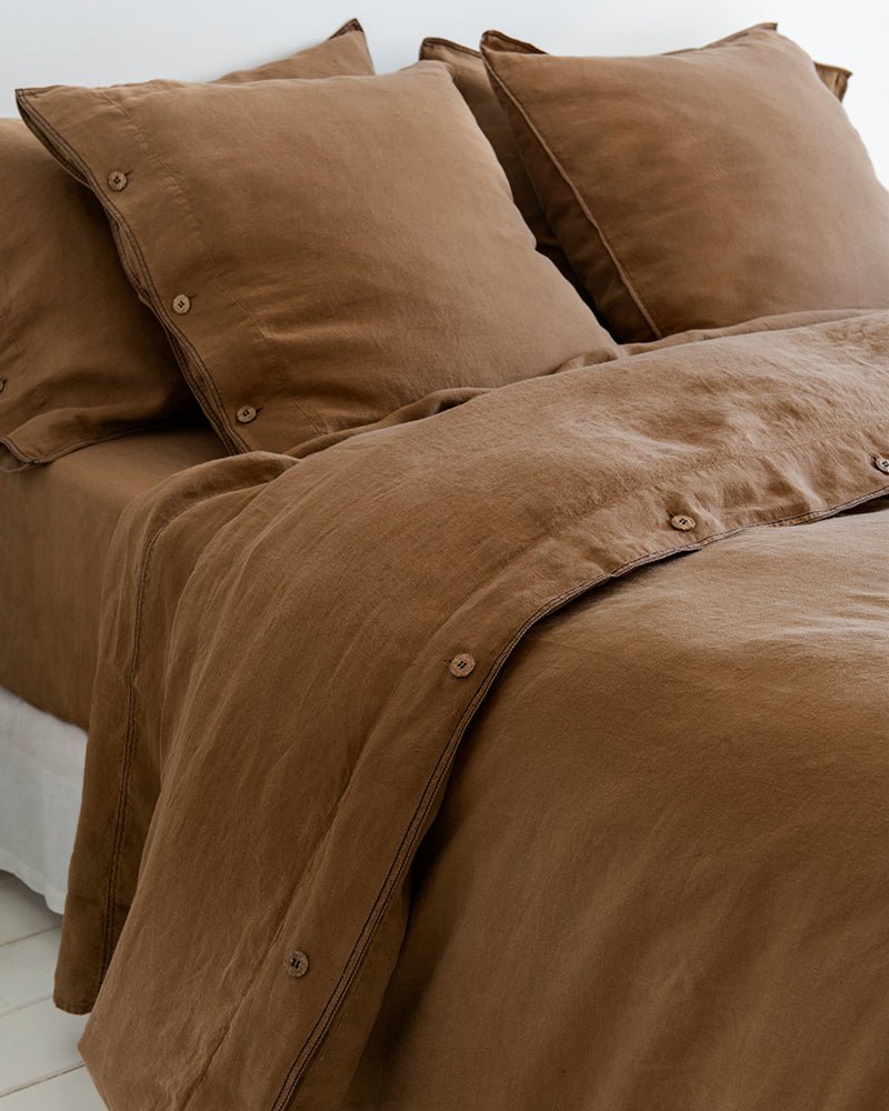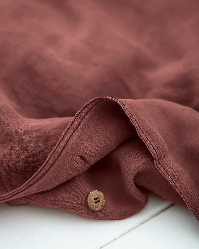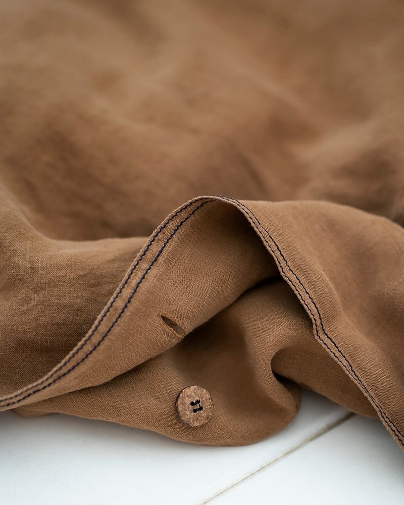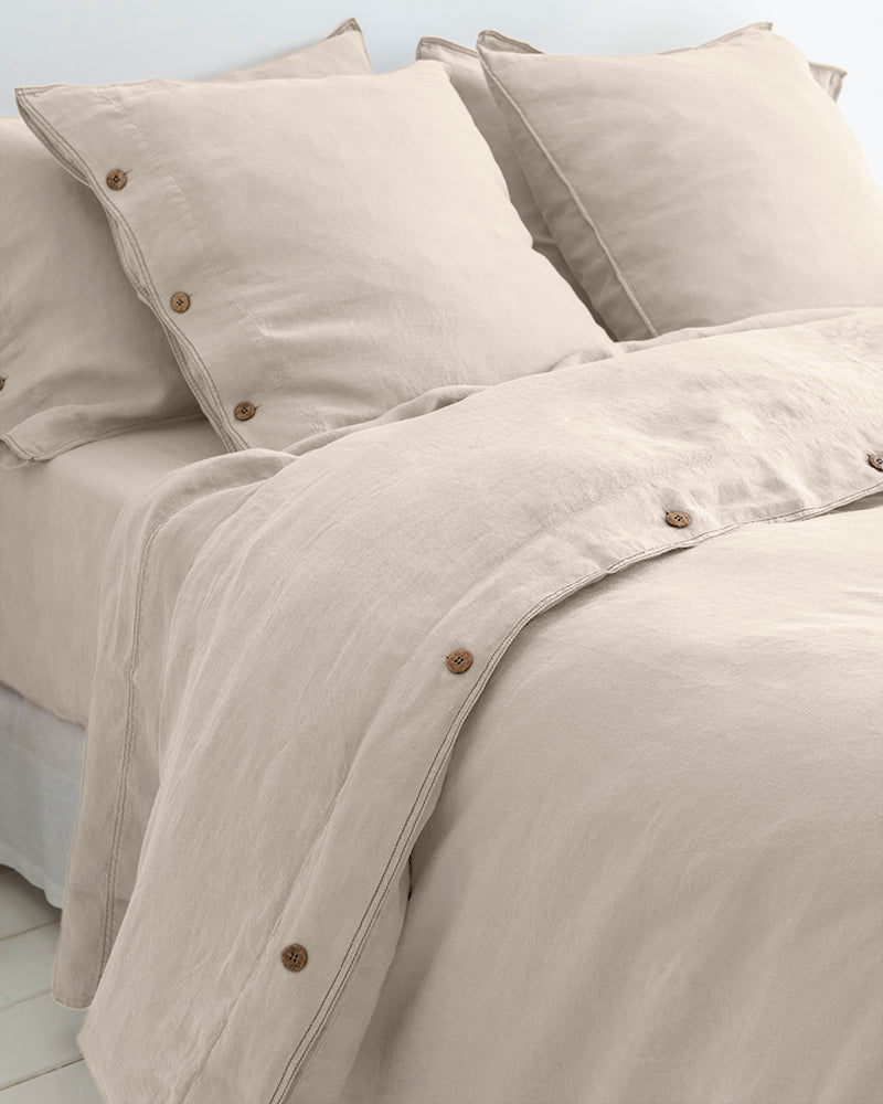 Double stitching. A rustic finish that enhances the elegance of the 100% hemp bedding set.