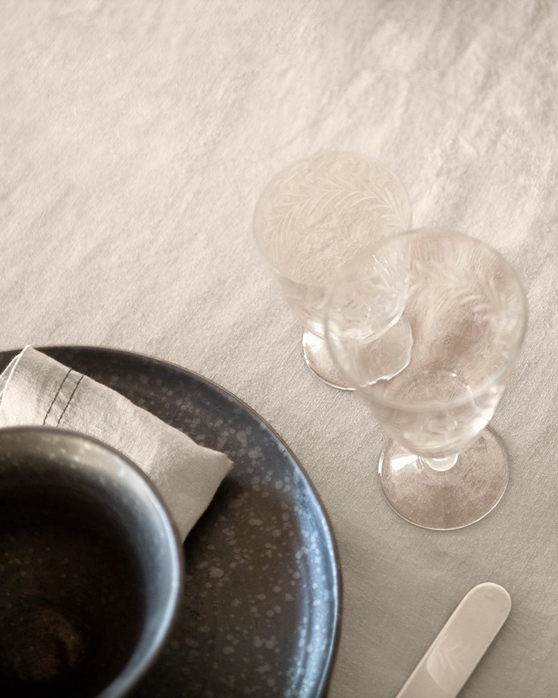 The Aless table set features hemp tablecloths and napkins. The tablecloths are available in different universal sizes, designed to fit all types of tables. When making your choice, keep in mind that it is washed linen and will not shrink, always looking elegant.