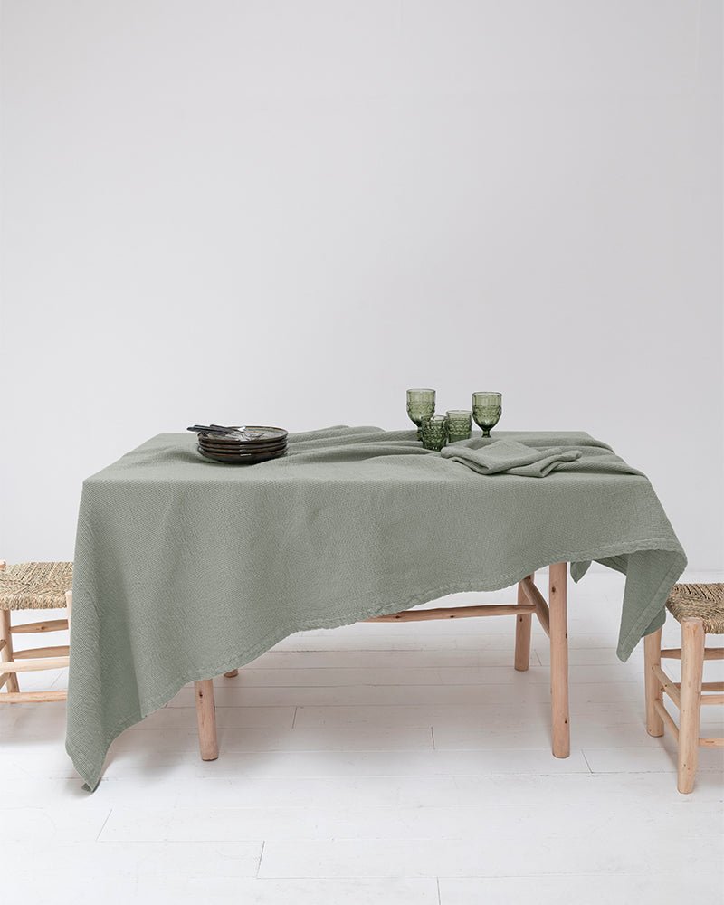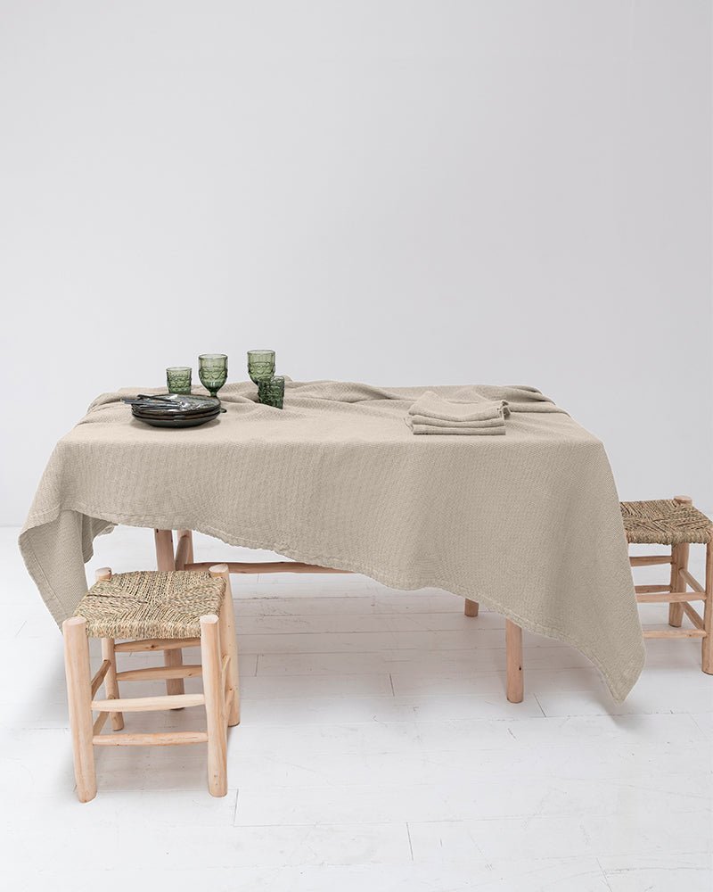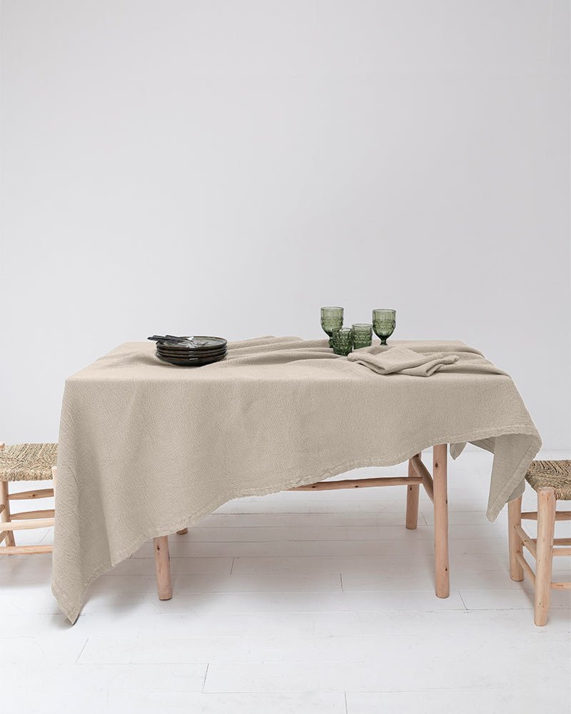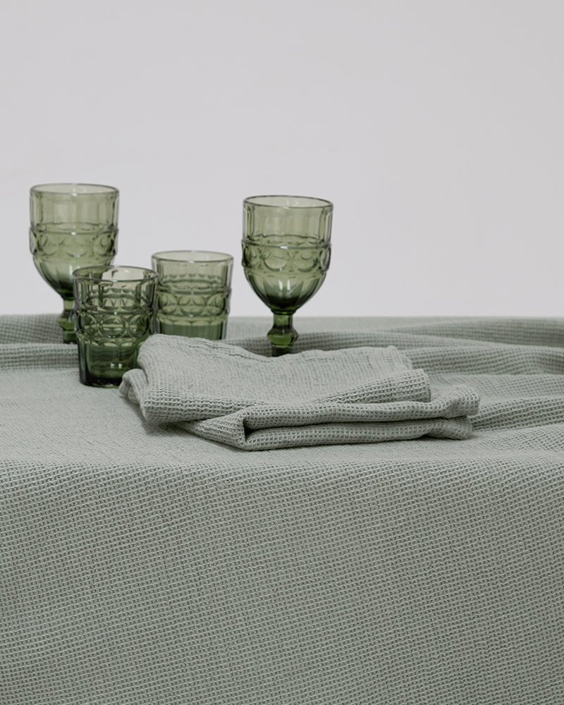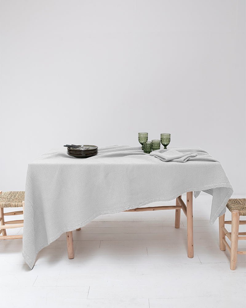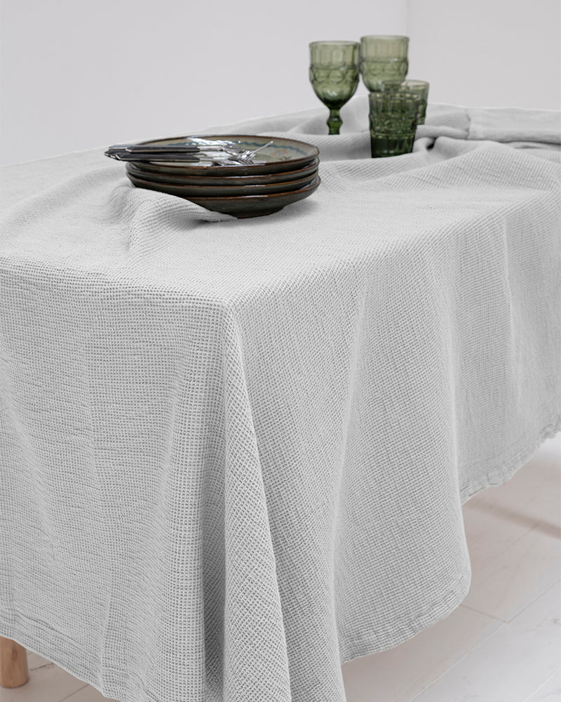 The Carolina table set features organic cotton tablecloths, napkins and packs of two individual tablecloths. The waffle tablecloths are available in various universal sizes, designed to match all types of tables.