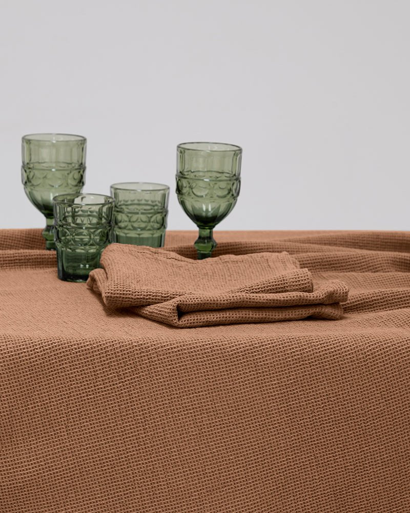 A unique cotton: With a waffle texture and a weight of 460 gr/m2 that ensures softness, absorption and resistance. Ideal for giving a rustic and cozy touch to your table.