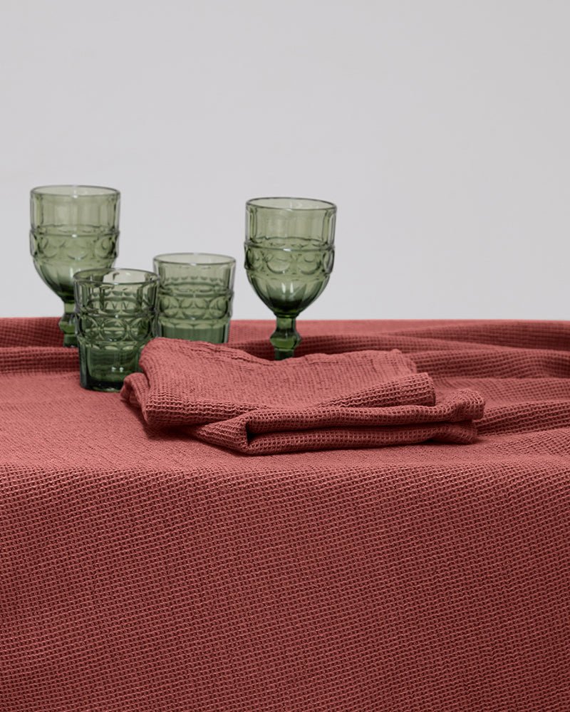 Collection items: Tablecloths, pack of 4 napkins and pack of 2 individual tablecloths in waffle fabric.