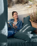 Composition: A blend of linen and Lyocell from eucalyptus. The strength and naturalness of linen with the softness and fluidity of lyocell in a very modern casual look. 100 gsm filling with recycled polyester fibers.A unique linen . Linen bedding made with fibers of European origin. High quality and resistance due to its weight of 150 gr/m2. A very durable fabric with the softness and lightness that we expect from a very high quality linen.