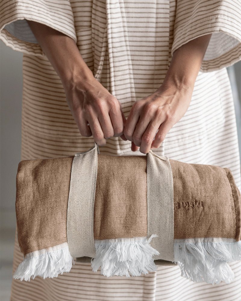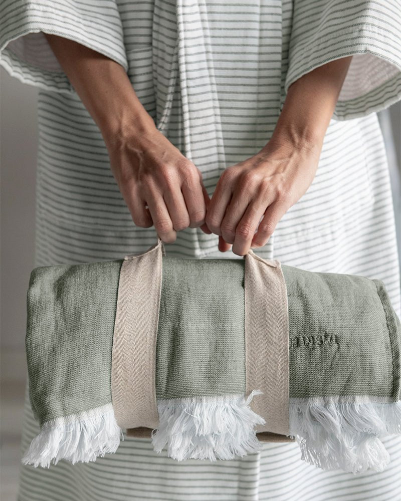 Composition: A mix of organic cotton and linen that gives the terry cloth of our bath towels and bathrobes an incomparable touch and absorption.A unique curl. Made with soft touch yarn made in Portugal. Its weight is 500 gr/m2, perfect for total comfort. Linen provides maximum breathability, freshness and resistance. Premium quality.