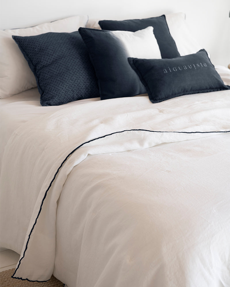 Finition : Percale 100 % lyocell blanc lavé avec feston contrasté, fabriqué au Portugal.