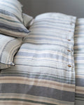 Description : Housse de couette, coussins et oreillers avec rabat et fermeture bouton coco. Possibilité de placer les boutons au pied du lit ou au milieu.