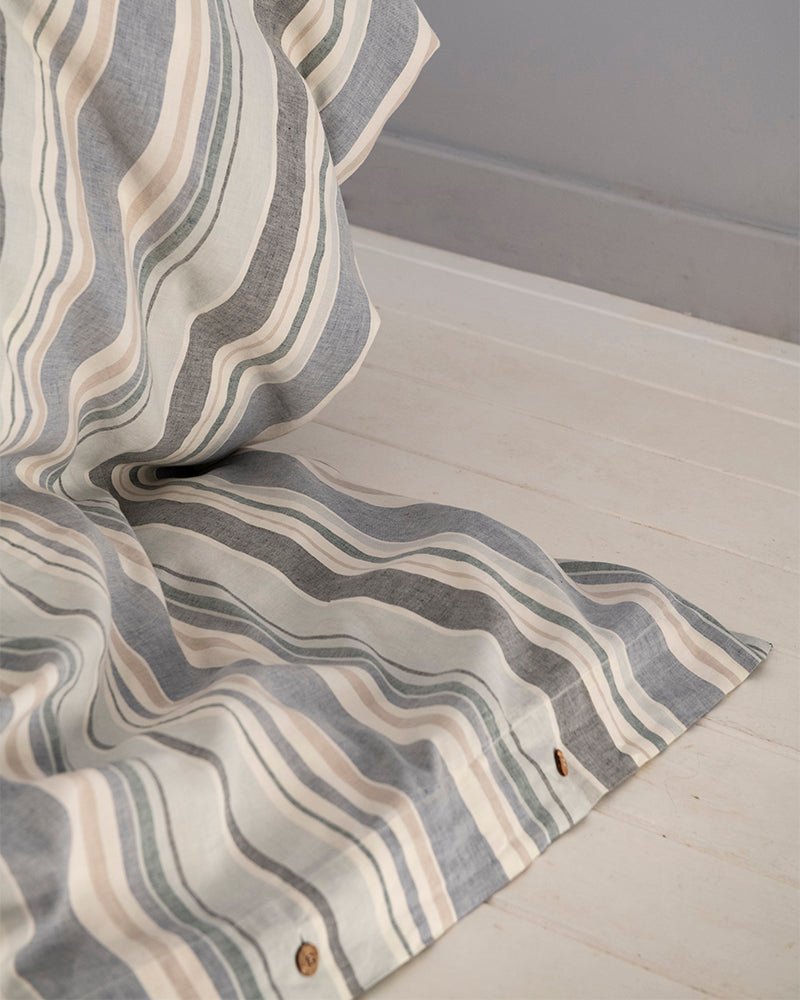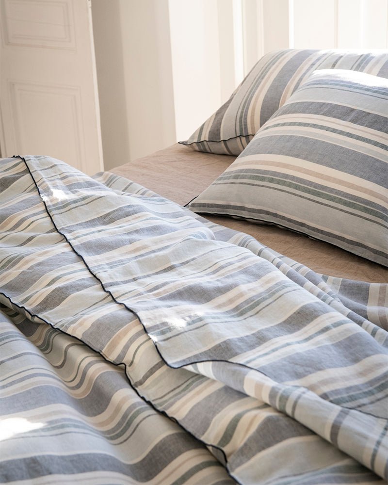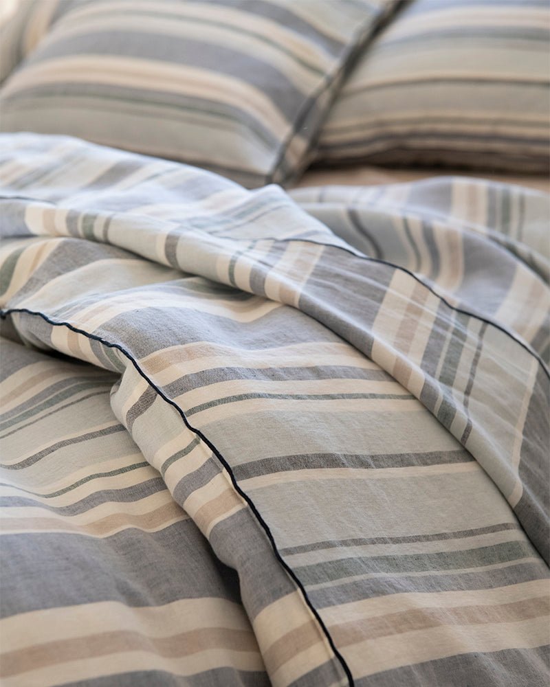 Finition : Pur lin et coton biologique teints en laine, fabriqués au Portugal.