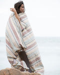 - Rayures multicolores tissées en fil teinté. Élégance minimaliste.