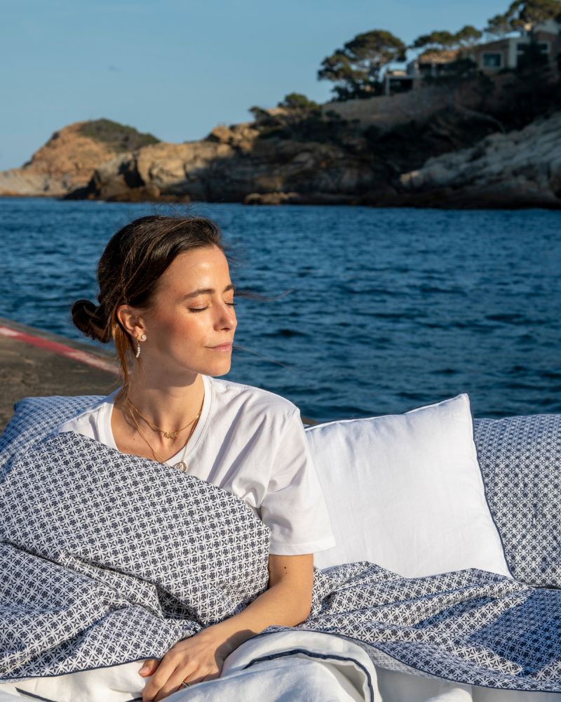 Un tissu unique. Son grammage de 131 g/m² lui confère un tombé enveloppant et très agréable. Résistant, doux et facile d’entretien. Parfait pour se reposer quelle que soit la saison.
