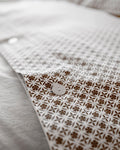 Tissu imprimé lavé avec feston en contraste : Le tissu de ce produit a été lavé en pièce, créant un toucher et un aspect uniques. Chaque fois que vous le touchez, vous ressentez une sensation spéciale de douceur et d’authenticité.
