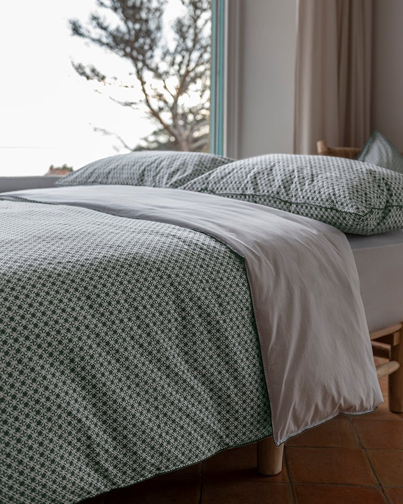 Articles de la collection : VENTE SÉPARÉE. Housse de couette, taies d’oreiller et carrés (sans garnissage), drap plat et drap-housse.