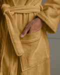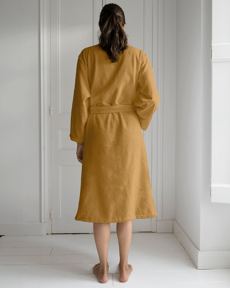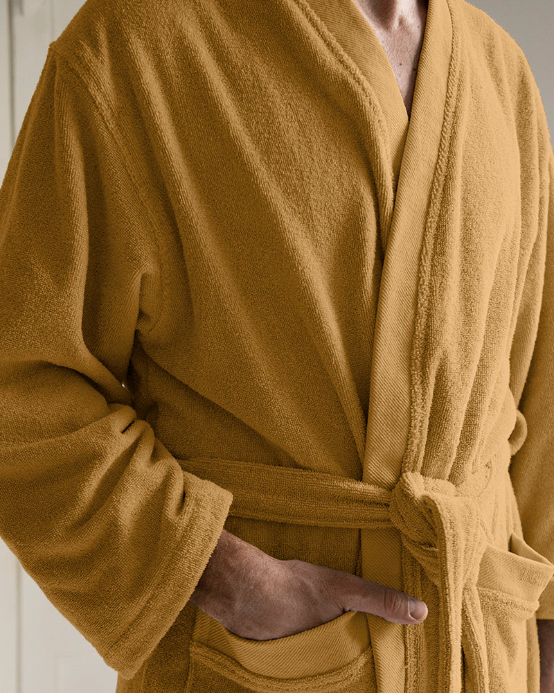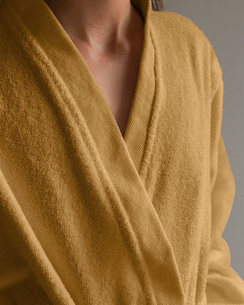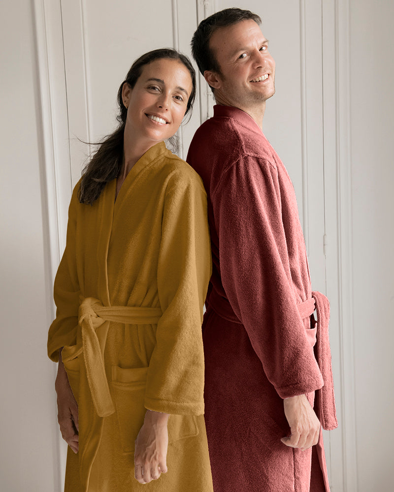 Composición: Albornoz de Algodón Bio-orgánico 100% tintado y lavado en prenda. Peso ideal con 450 gr/m2.