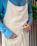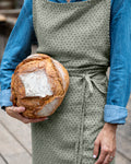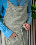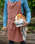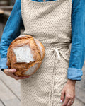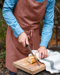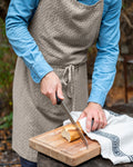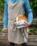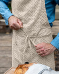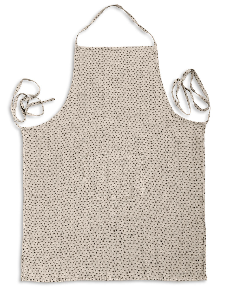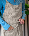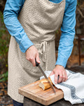 Descripción: Delantal de lino con bolsillo y cinturón ajustable.