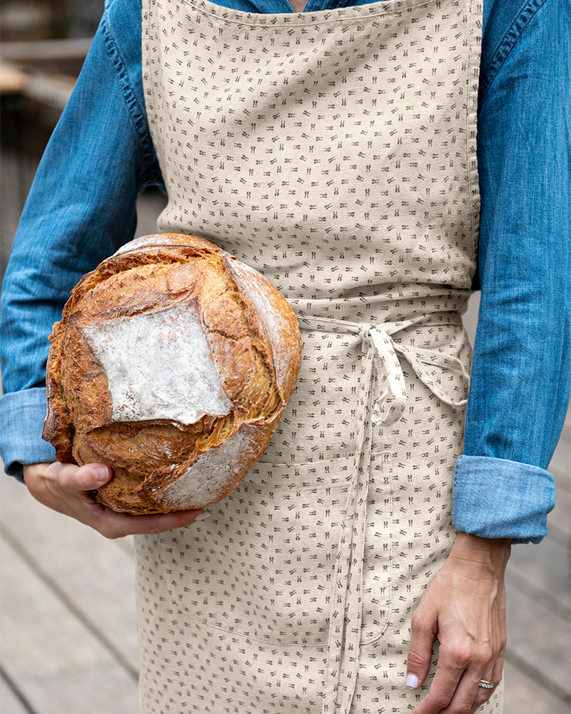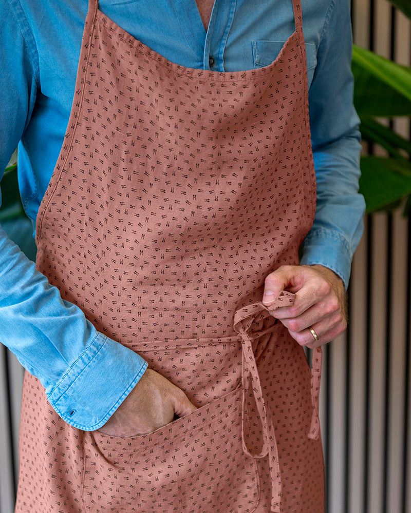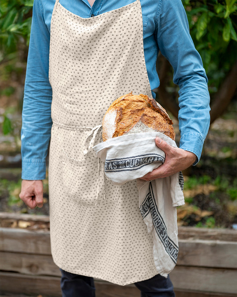 Composición: Lino lavado 100%, ético y sostenible. Nuestras composiciones no son engañosas; cuando hablamos un delantal de lino es porque el tejido es de composición lino 100%.