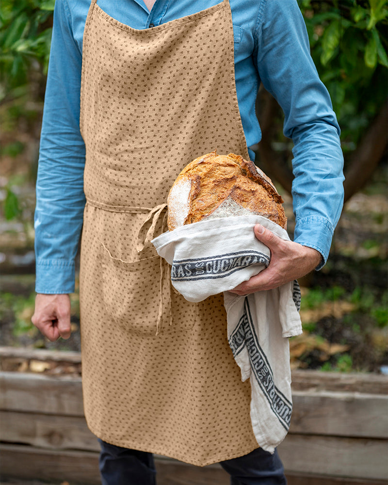 Siempre suave, elegante y resistente. El delantal Dos Cucharas mantiene su aspecto casual y su tacto dulce sin necesidad de planchar ni de añadir productos suavizantes. Recomendamos un secado al aire cómodo para ti y sostenible para el planeta.