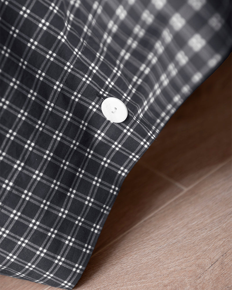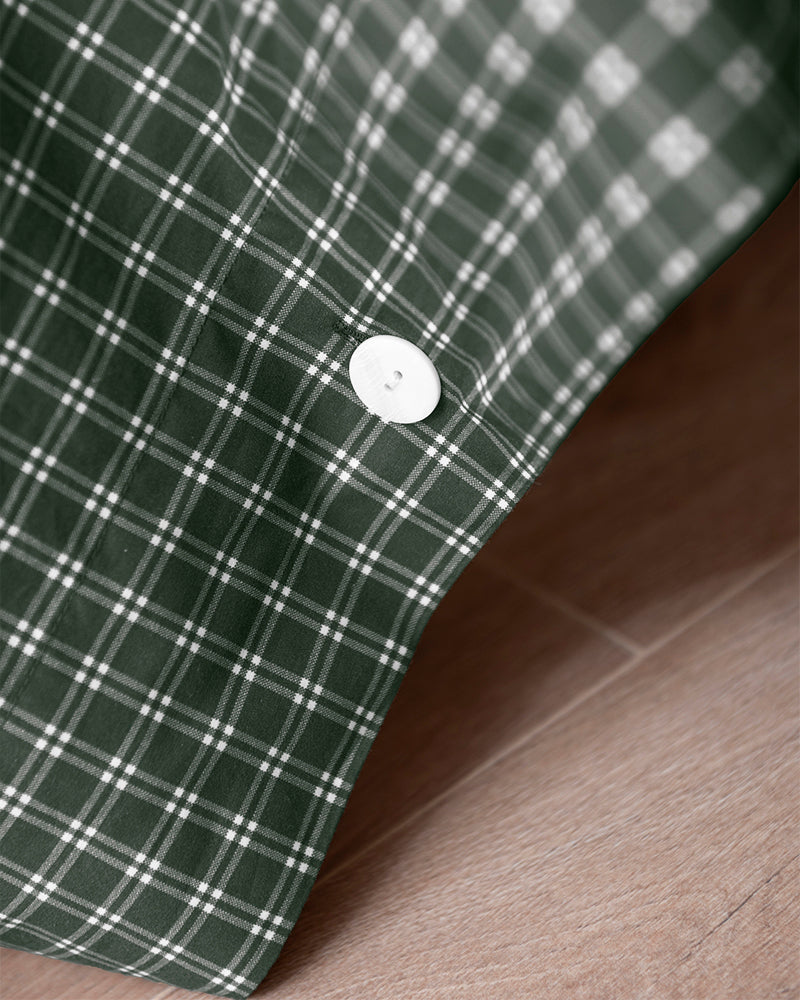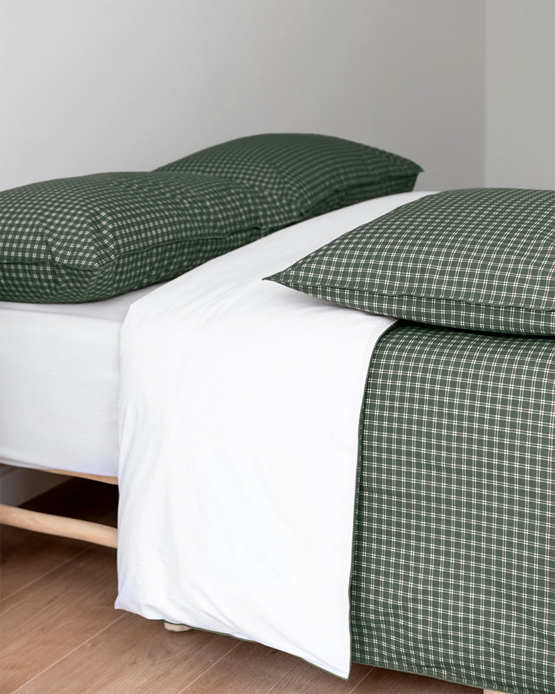 Descripción: Funda nórdica, cojines y almohadas con solapa y cierre de botones. En la funda nórdica, los botones pueden colocarse a los pies de la cama o en el centro.