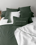 Acabado: Percal 100% lyocell blanco lavado con festón a color, fabricado en Portugal.
