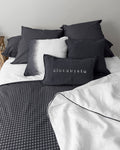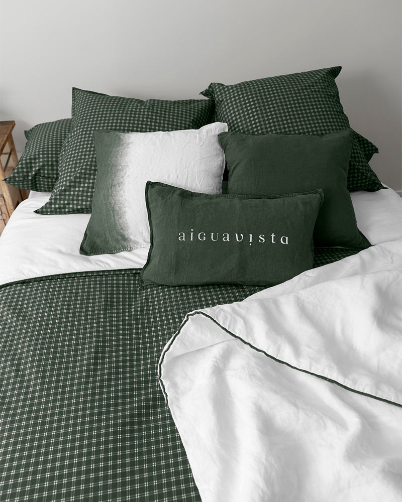 Descripción: Funda nórdica, cojines y almohadas con solapa y cierre de botones. En la funda nórdica, los botones pueden colocarse a los pies de la cama o en el centro.