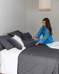 Un tejido único. Su peso de 131 gr/m² le otorga una caída envolvente y muy agradable. Resistente, suave y de fácil cuidado. Perfecto para descansar en cualquier estación del año.