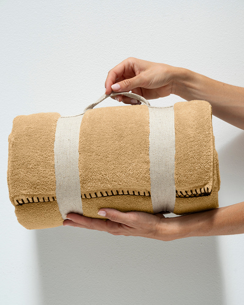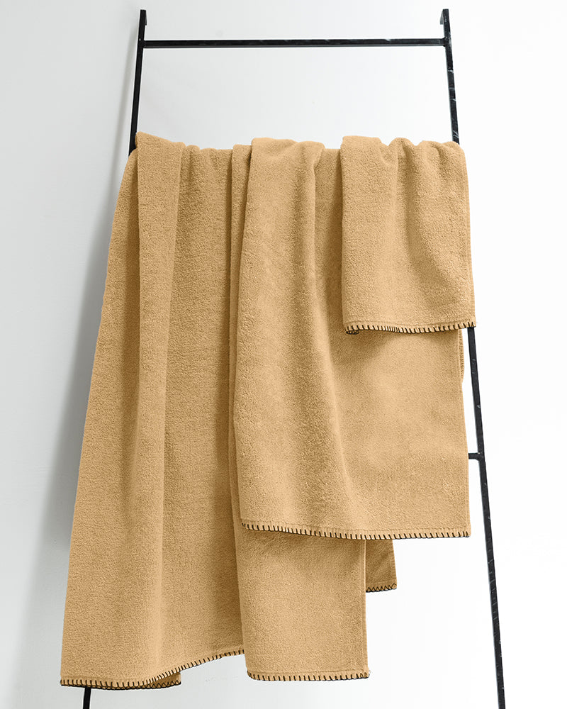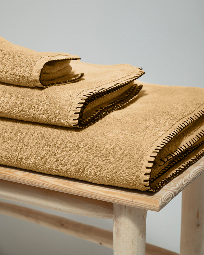 - Pespunte contrastado en el perímetro superior e inferior de la toalla.